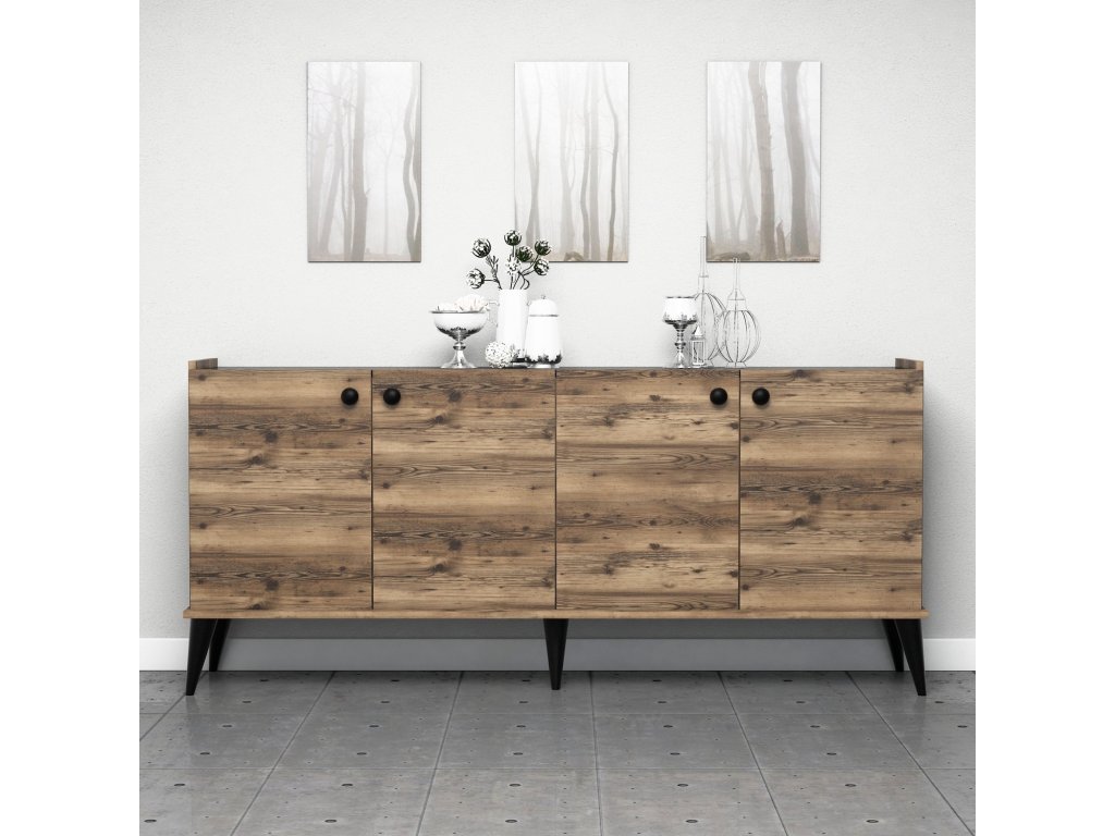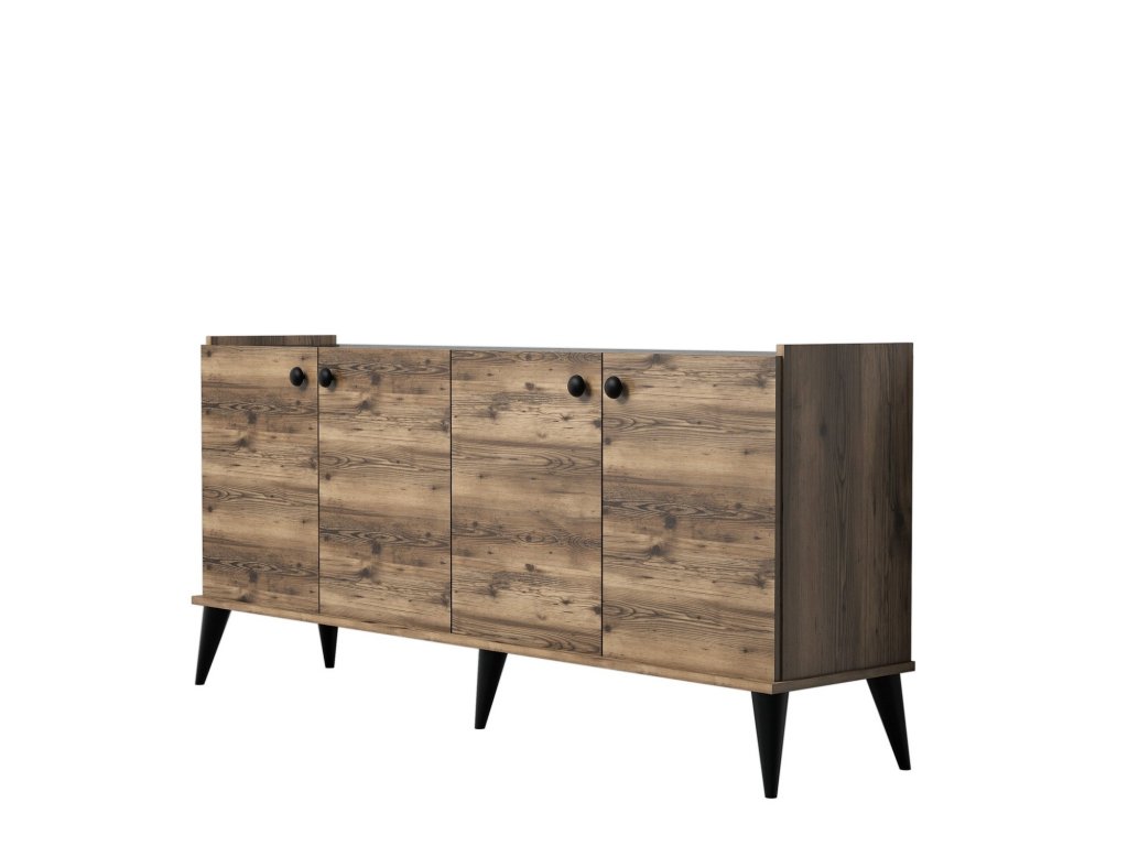 Je vyrobena z 18mm silných desek pokrytých 100% melaminem v dekoru ořech a černý mramor.