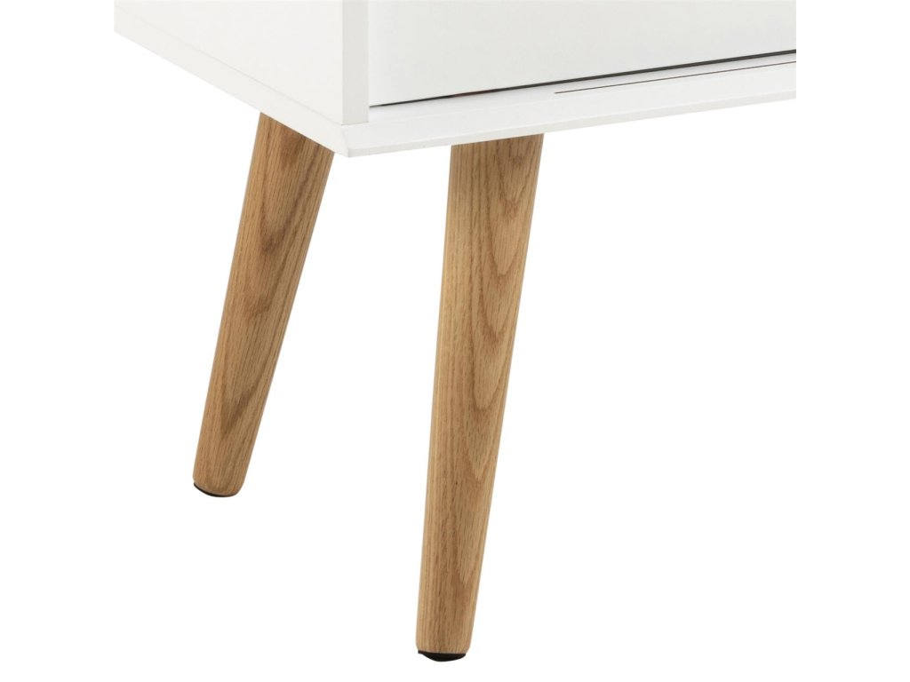 Praktická bílá komoda s posuvnými dvířky v jemném retro designu, zapadne do každé ložnice i obývacího pokoje.