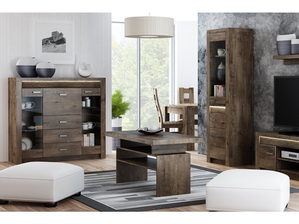 Komoda s vitrínou ALGORI 4 zásuvky šedohnědá 137 x 122 x 42 cm