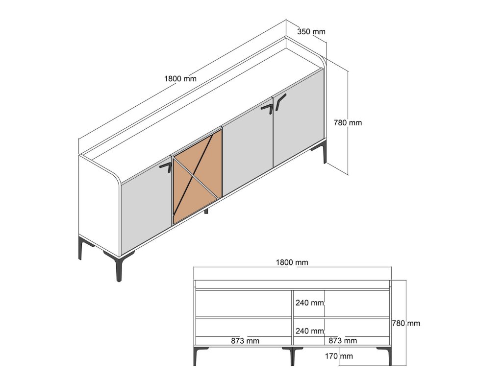 Rozměry: Šířka: 180 cm Výška: 78 cm Hloubka: 35 cm Kovové nožky:17 cm