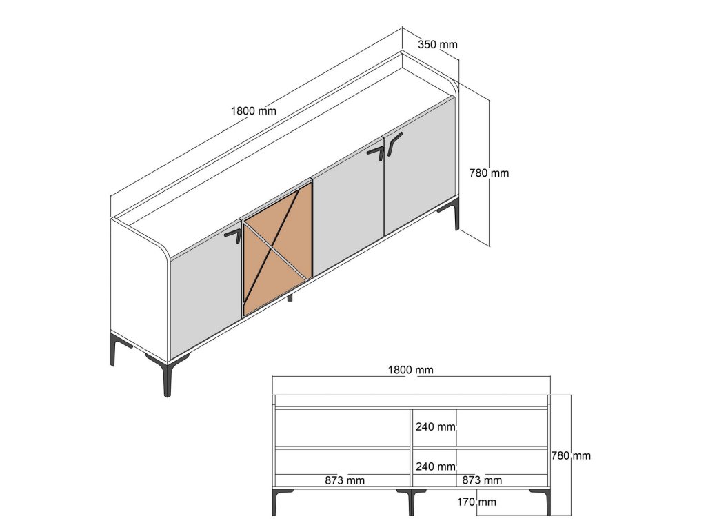 Rozměry: Šířka: 180 cm Výška: 78 cm Hloubka: 35 cm Kovové nožky:17 cm