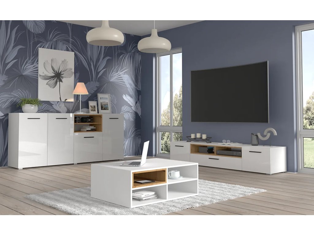 Konferenční stolek ANETTE bílý mat/dab artisan