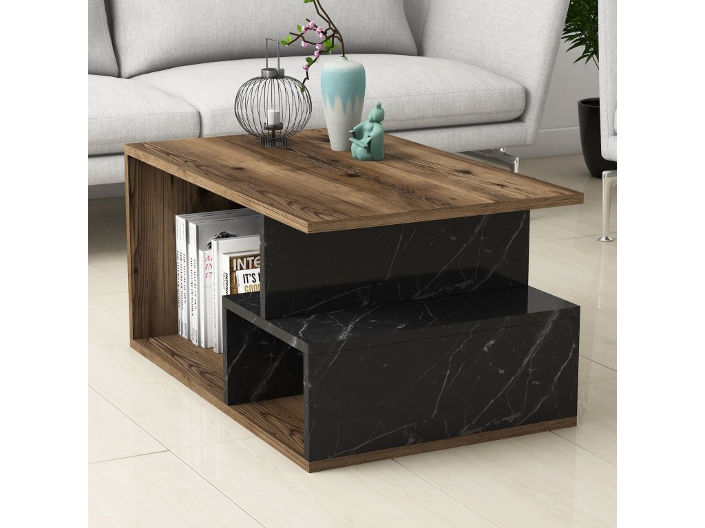Konferenční stolek ARTE tmavý ořech černý mramor