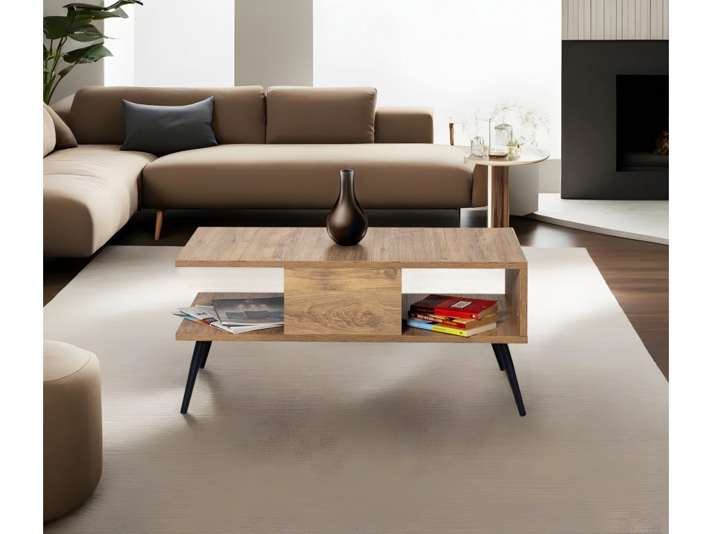 Díky svému elegantnímu a modernímu designu vyzařuje tento konferenční stolek auru elegance, které prostě nelze odolat. Kombinace atlantské borovice a černé barvy vytváří výrazný kontrast a dodá každé místnosti nádech dramatičnosti. Jeho konstrukce ze 100% melaminem potažené dřevotřísky zajišťuje odolnost a dlouhou životnost, takže je rozumnou investicí na dlouhá léta.