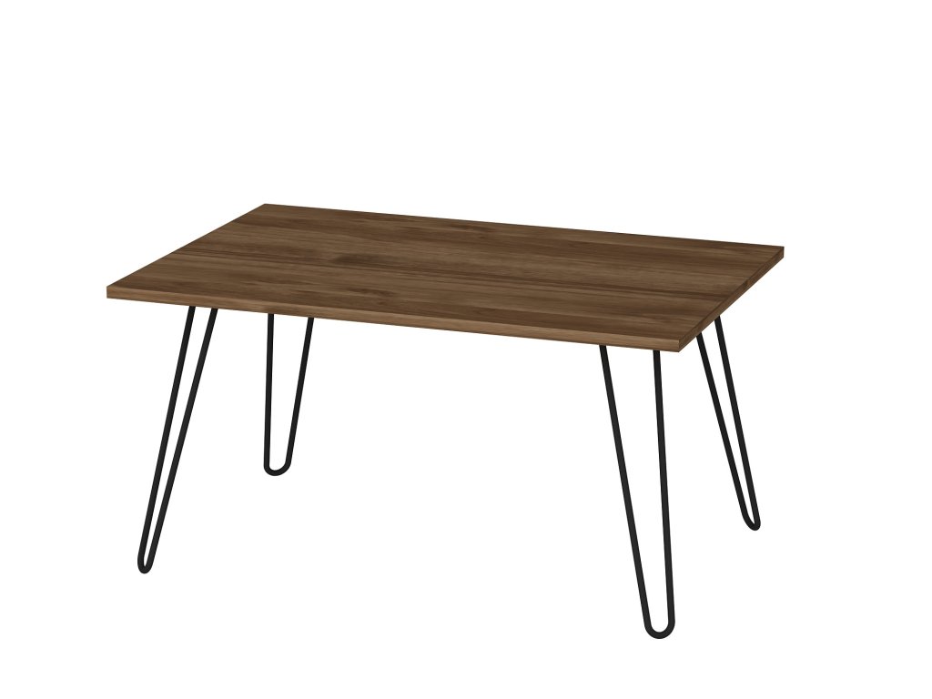 Klasický konferenční stolek DEREN s deskou v provedení ořech, s elegantními kovovými nohami jsou z kovu.