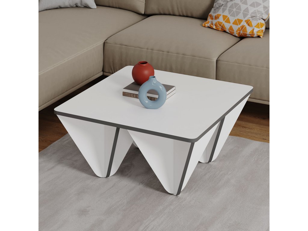 Konferenční stolek DIAMOND je vyrobený v bílé barvě s antracitovým lemováním na všech hranách a jeho desku můžete využít nejen jako odkládací, ale i jako herní, nebo dezertní plochu.