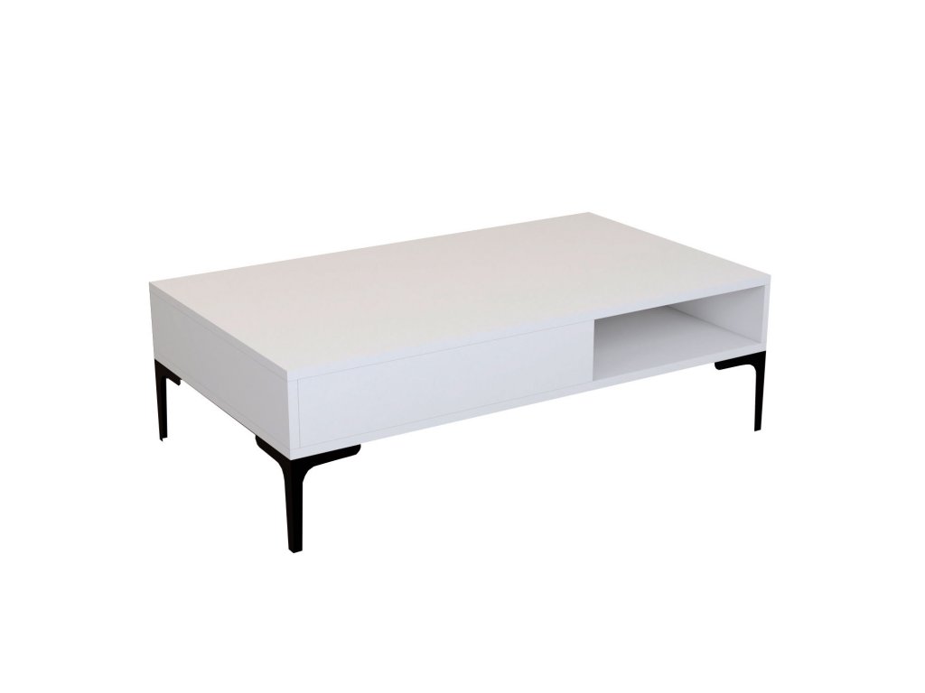 Je vyroben z černých kovových nohou a z 18 mm silných desek pokrytých 100 % melaminem v bílé barvě.