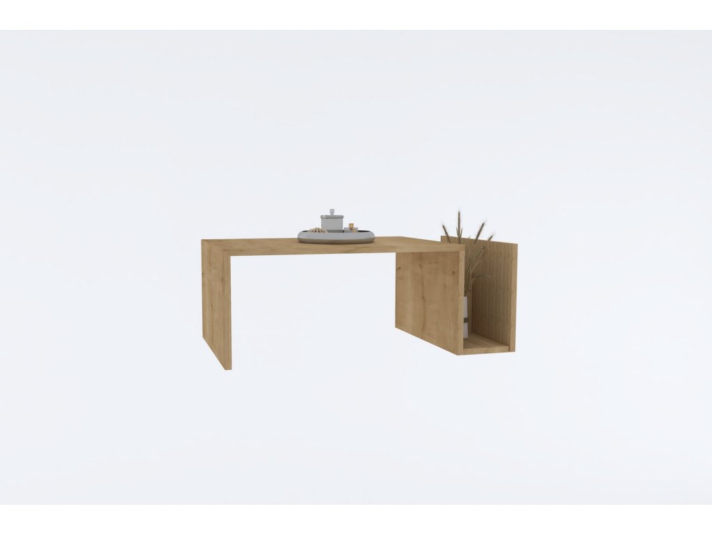 Konferenční stolek MEMO je vyrobený v dekoru dub sapphire a kromě odkládací desky nabízí ještě boční přihrádku s příčkou.