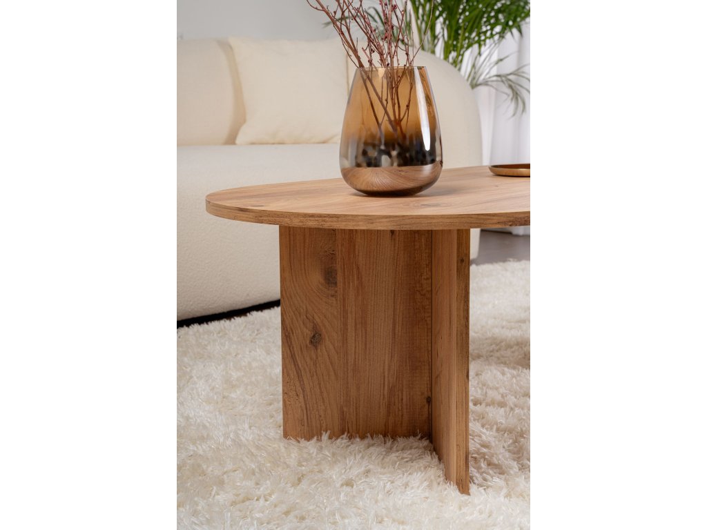 Konferenční stolek z atlantského borovice je vyroben ze 100% melaminem potažené dřevotřísky, což zajišťuje jeho odolnost a dlouhou životnost. Elegantní design a barva atlantského borovice dodávají každé místnosti nádech tepla a sofistikovanosti. Jeho dostatečná velikost poskytuje spoustu místa pro vaše hrnky na kávu, časopisy a dekorativní předměty, což z něj činí jak funkční, tak stylový kousek.