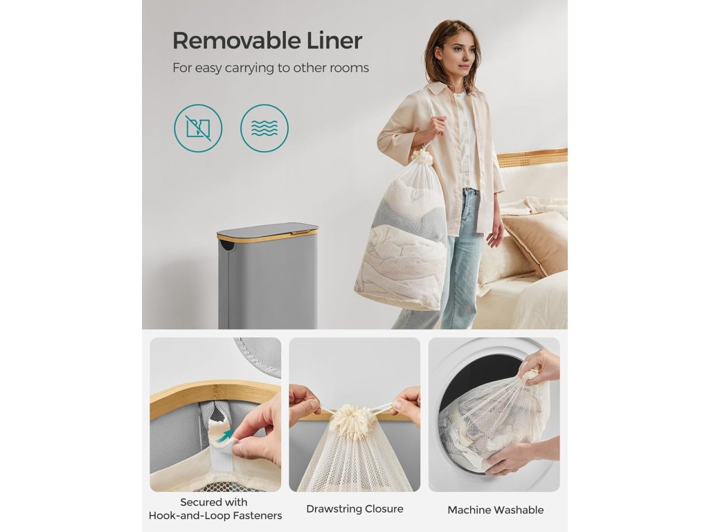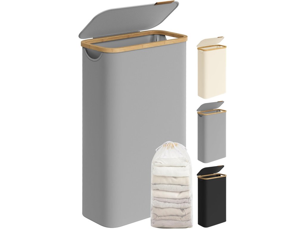 Úzký a vysoký koš na prádlo o objemu 65 litrů a rozměrech 42 x 22,5 x 70,5 cm je speciálně navržen tak, aby se vešel do stísněných prostor, což z něj činí ideální koš na prádlo pro malé obytné prostory nebo kompaktní prádelny.