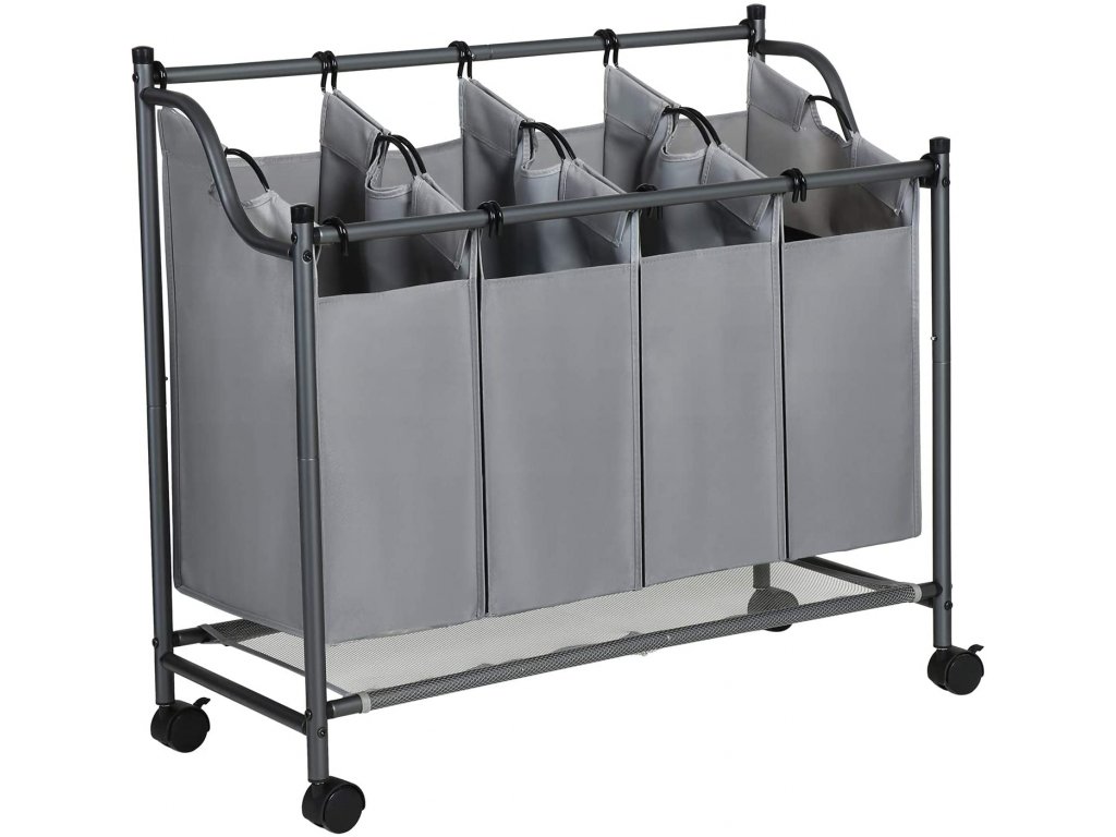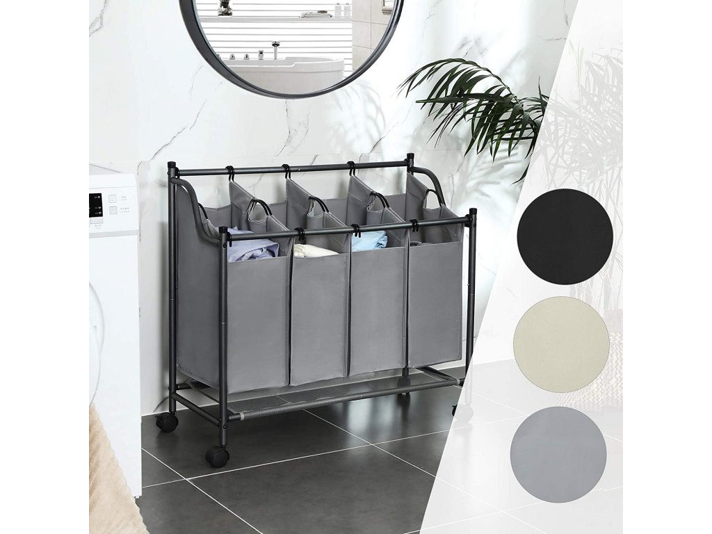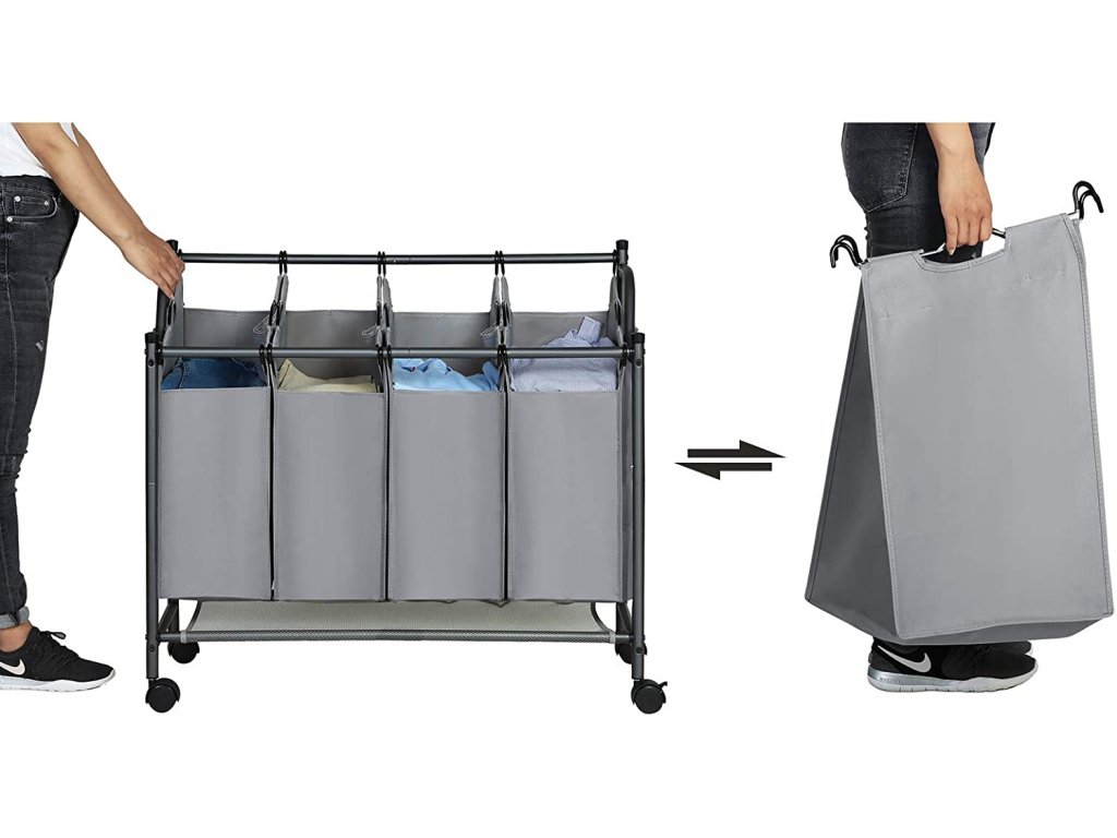 S tímto chytrým košem na prádlo můžete před praním třídit prádlo podle barvy nebo materiálu. K dispozici jsou čtyři 35litrové sáčky na prádlo, takže můžete zabránit tomu, aby vaše červené ponožky obarvily vaše bílé tričko na růžové