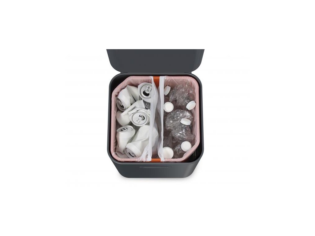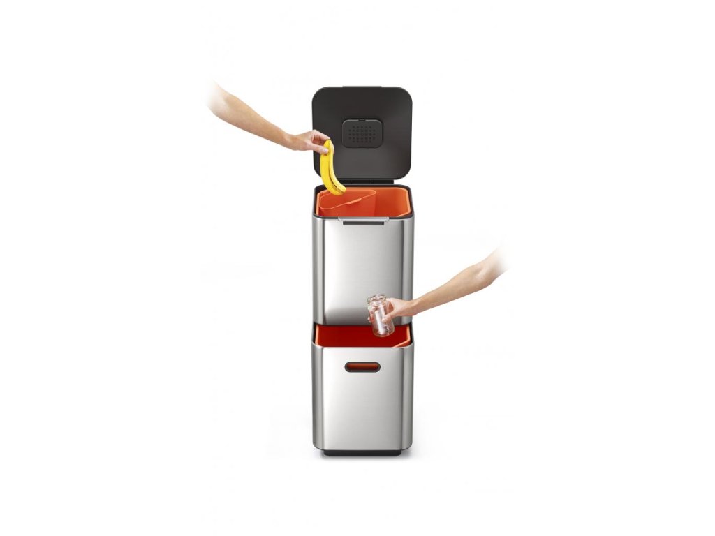 V každém Totemu najdete dva nad sebou umístěné plastové koše o obsahu 30+30 litrů (Max) / 20+20 litrů (Compact) umístěné v kovových korpusech. Koše mají tvarované okraje s drážkami pro snadné uchycení sáčků na odpadky. Rohové zkosení vnitřních košů usnadňuje jejich vyjmutí z korpusu. Každá sestava je doplněna malou odnímatelnou nádobkou na zbytky potravin / bio odpad. Tuto nádobku můžete upevnit k okraji horního koše. Pro snadné plnění je možné nádobku postavit přímo na pracovní plochu a víčko zaklesnout úchytkou na hranu horního koše.