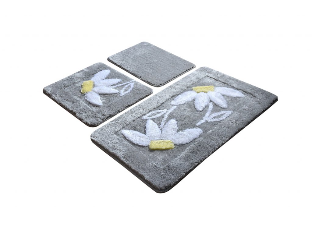 Koupelnová předložka trojdílná DAISY šedá s květinami