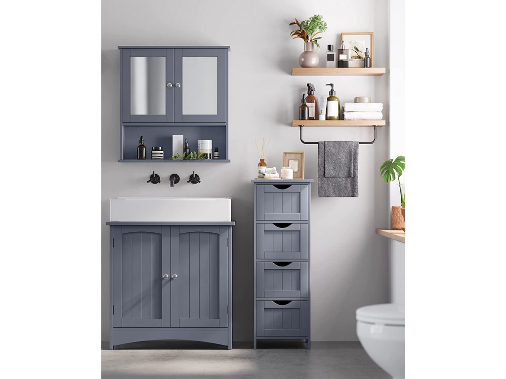 Je vyrobena z kvalitních MDF desek pokrytých melaminem v šedé barvě.
