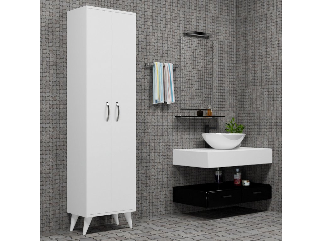 Tato skříňka je vyrobena ze 100% melaminované dřevotřísky a vydrží dlouho. Tloušťka 18 mm zaručuje výjimečnou pevnost a stabilitu a zaručuje dlouholeté spolehlivé používání. Bílá barva dodává skříňce nádech sofistikovanosti a bez námahy ji sladíte s jakýmkoli interiérem koupelny.