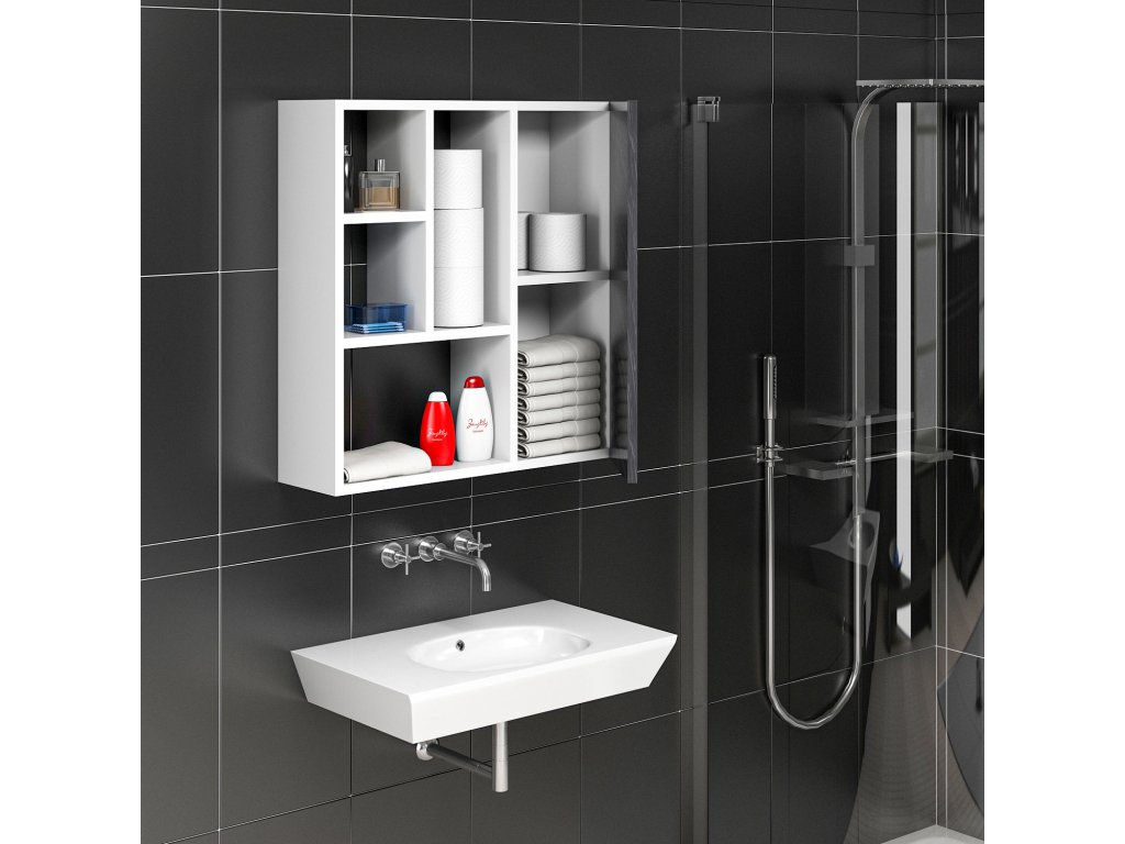 Bílá koupelnová skříňka SECRET bude vhodným doplňkem do mnohé koupelny.