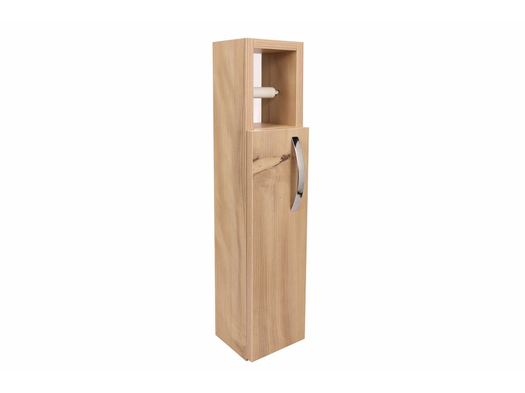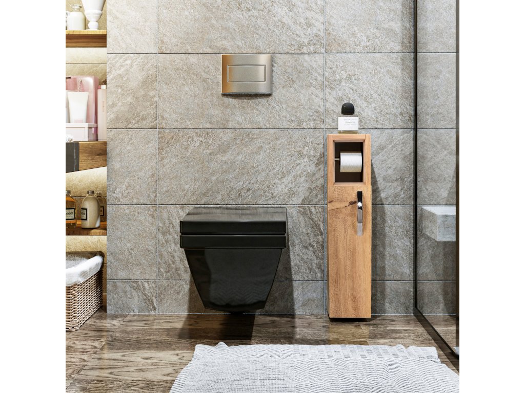 V dekoru dub vyrobená koupelnová skříňka STAR Vám nabízí drobný úložný prostor pro toaletní papír.