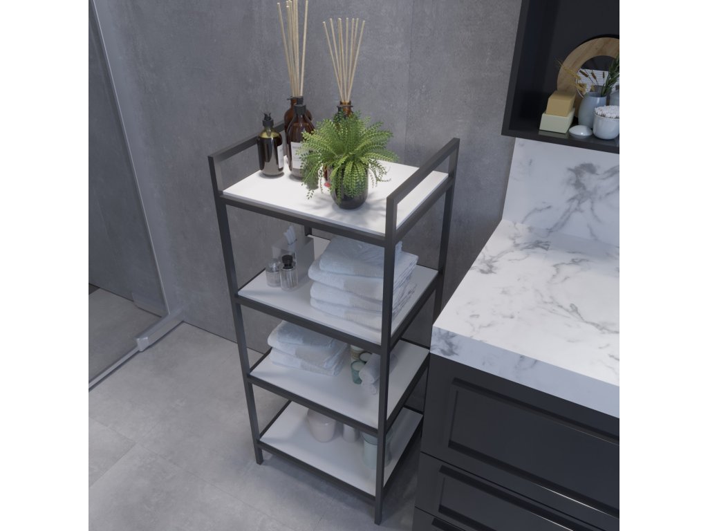 Díky rozměrům 45 x 110 x 35 cm nabízí tento regál dostatek úložného prostoru pro veškerou kosmetiku a další nezbytnosti do koupelny.