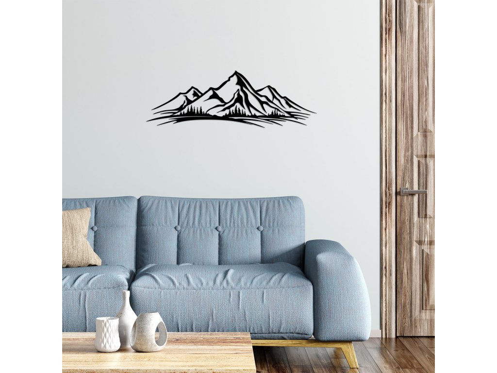 Černá kovová nástěnná dekorace MOUNTAIN může být vhodným doplňkem pro milovníky hor a přírody.