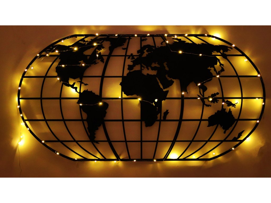 WORLD LED je černá kovová nástěnná dekorace, která potěší světoběžníky i kontinentální nadšence.