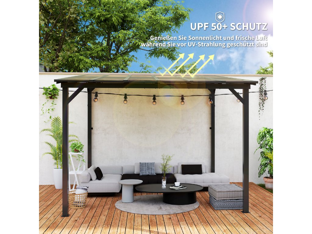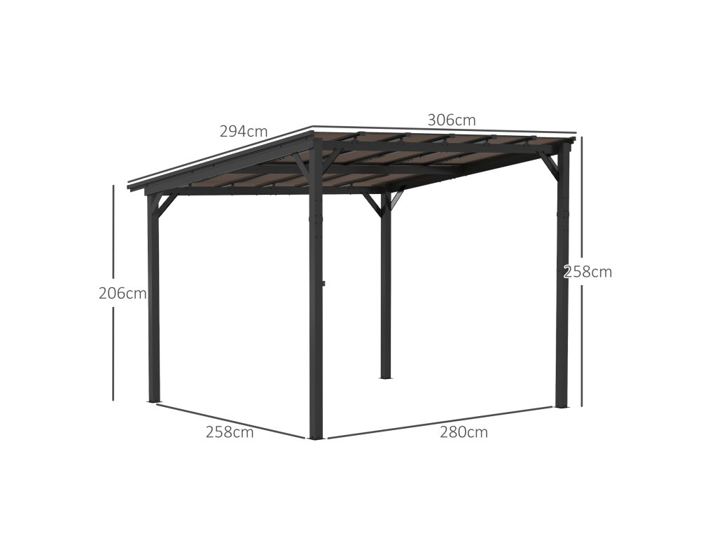 Kovová pergola s polykarbonátovou střechou 306 x 258 x 294 cm tmavě šedá