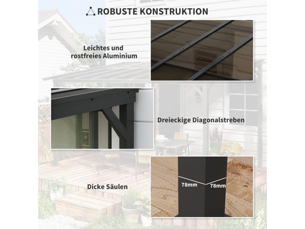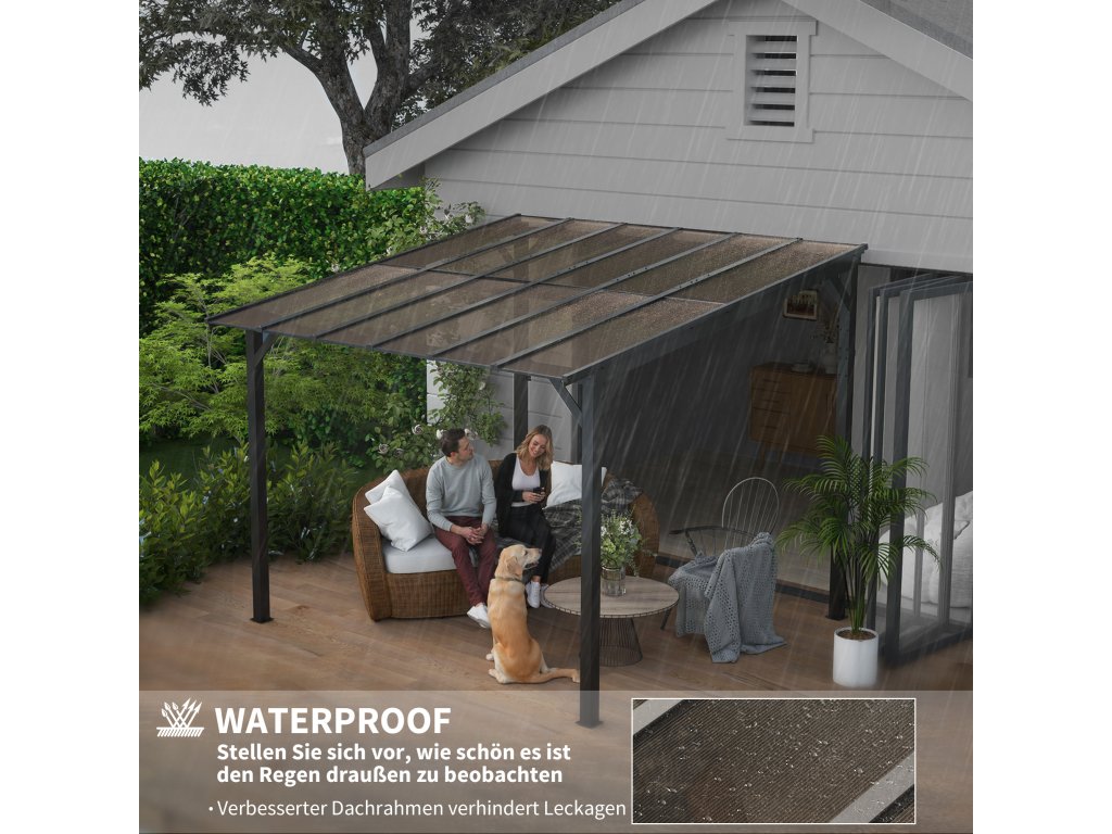 Optimalizujte svůj venkovní prostor s pergolou Outsunny, která díky robustní kovové konstrukci kombinuje styl a funkčnost. Díky střeše odolné proti UV záření a vodě nabízí altán útulný venkovní prostor po celý rok. Robustní rám zahradního altánu odolá i silnému větru - bezpečně připevněný k podlaze a stěně je odpovídajícím způsobem stabilní. Ideální pro oslavy, grilování nebo hodiny odpočinku venku.