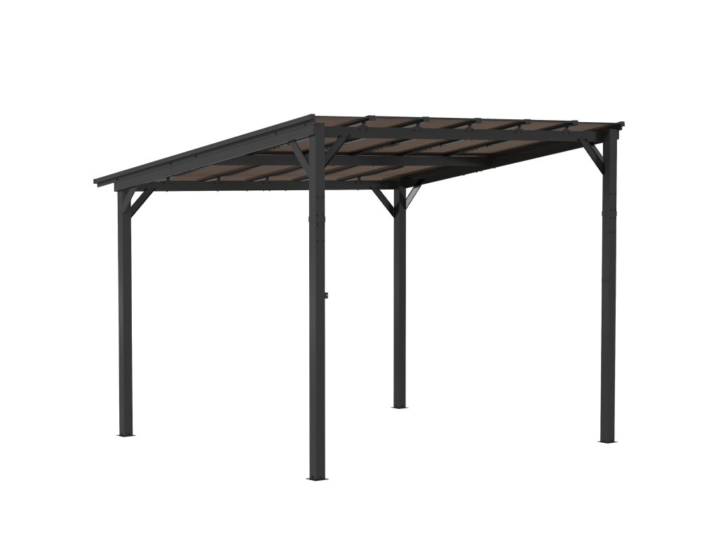 ✔ Pergola je bezpečně připevněna ke stěně a k zemi, takže odolá i silnému větru