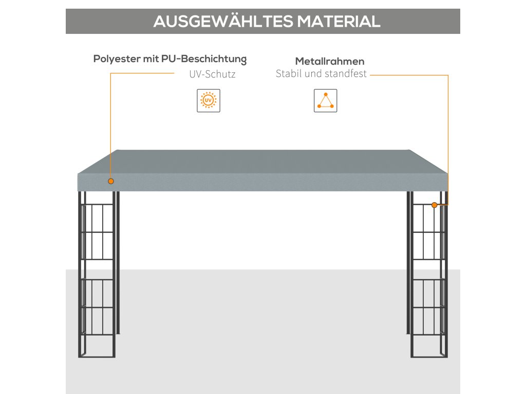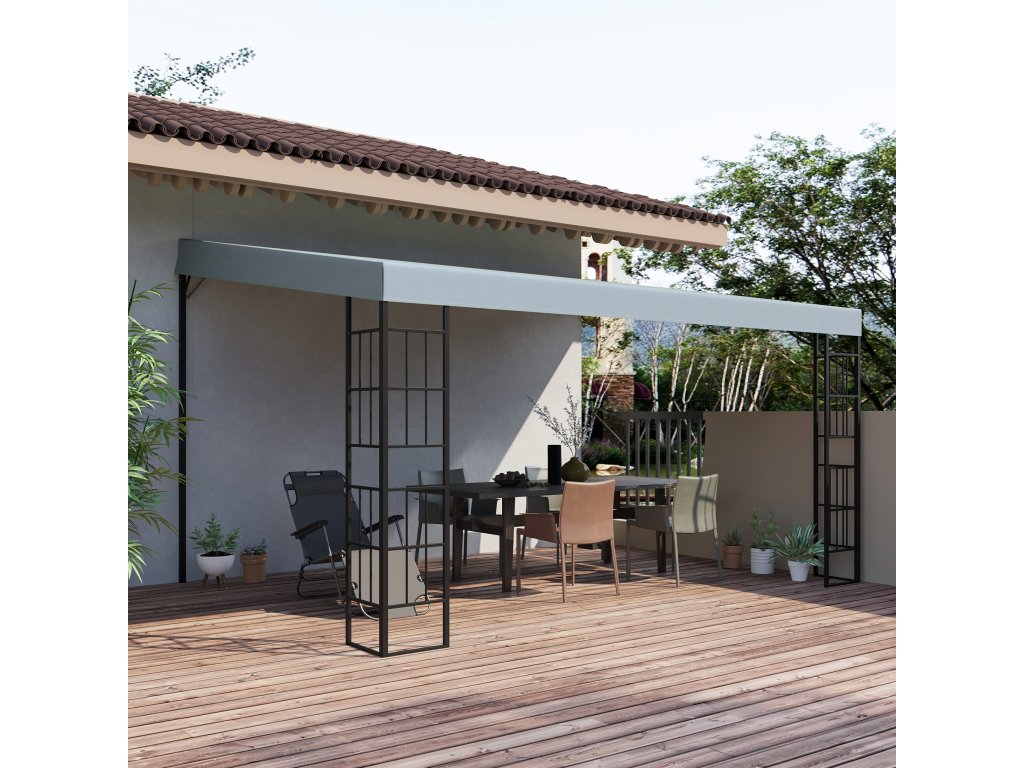Tento altán o rozměrech 4 x 3 m od společnosti Outsunny dodá každému venkovnímu prostředí elegantní nádech! Pavilon poskytuje ideální přístřeší za slunečných dnů a umožňuje spoustě lidí užívat si chladivý vánek ve stínu pod velkorysou střešní plochou. Šikmá střecha je vyrobena z potaženého polyesteru a má dva otvory umožňující nerušený odtok dešťové vody. Doplňte svou zahradu o tuto pergolu a užívejte si klidu přírody plnými doušky!