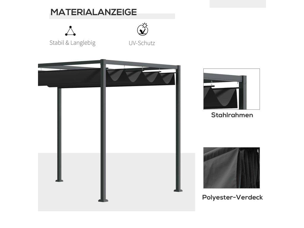 Kovová pergola s posuvnou látkovou střechou 298 x 221 x 213 cm černá