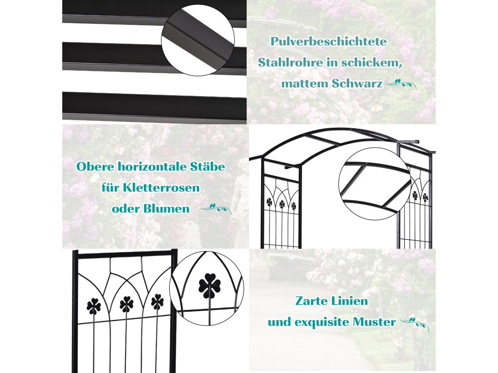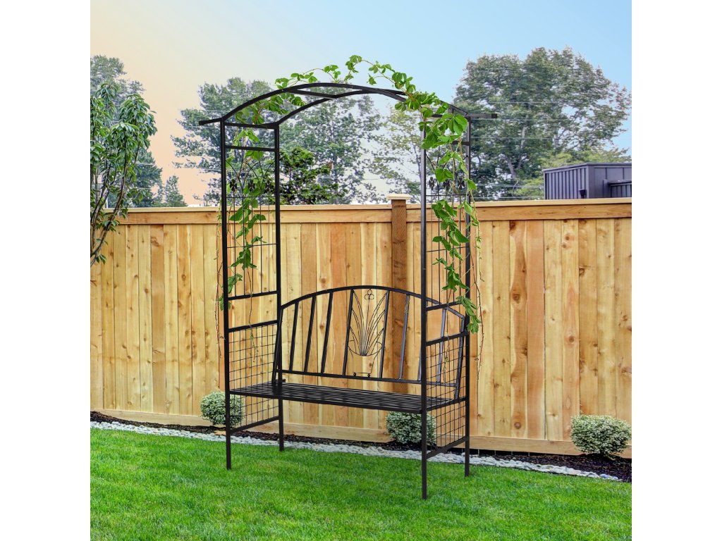 Kovová zahradní lavička s obloukem pro popínavé rostliny 154 x 60 x 205 cm černá
