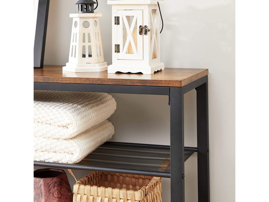 Je vyrobený z černého kovového rámu, z pěti černých perforovaných polic a z jedné police z MDF desky hnědé barvy.