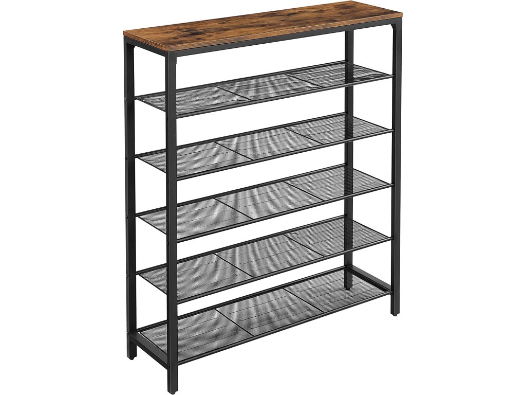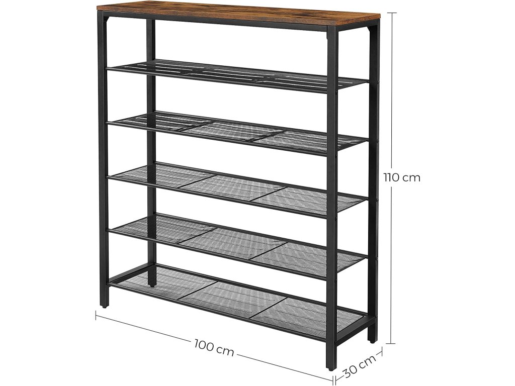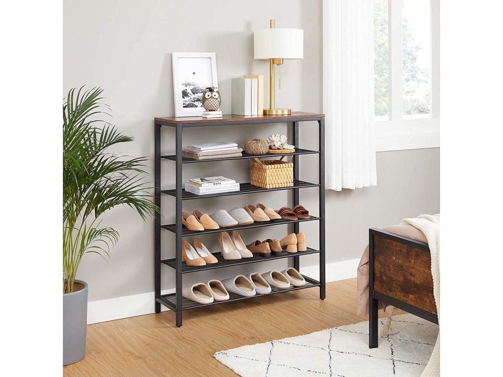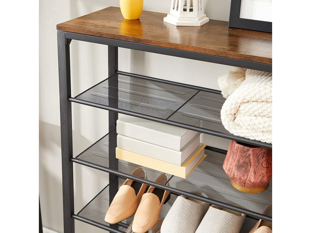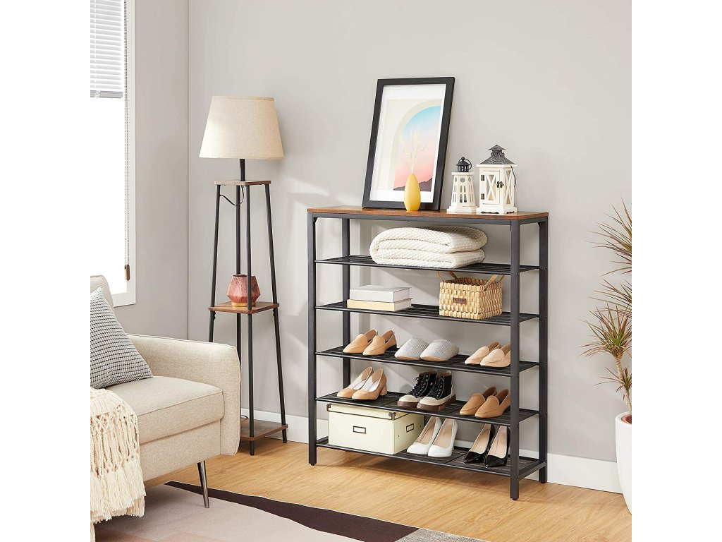 Černý kovový skládací botník je velkým pomocníkem pro velké rodiny, nebo pro větší počet bot.