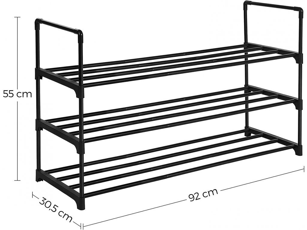 Kovový botník skládací 3 police černý