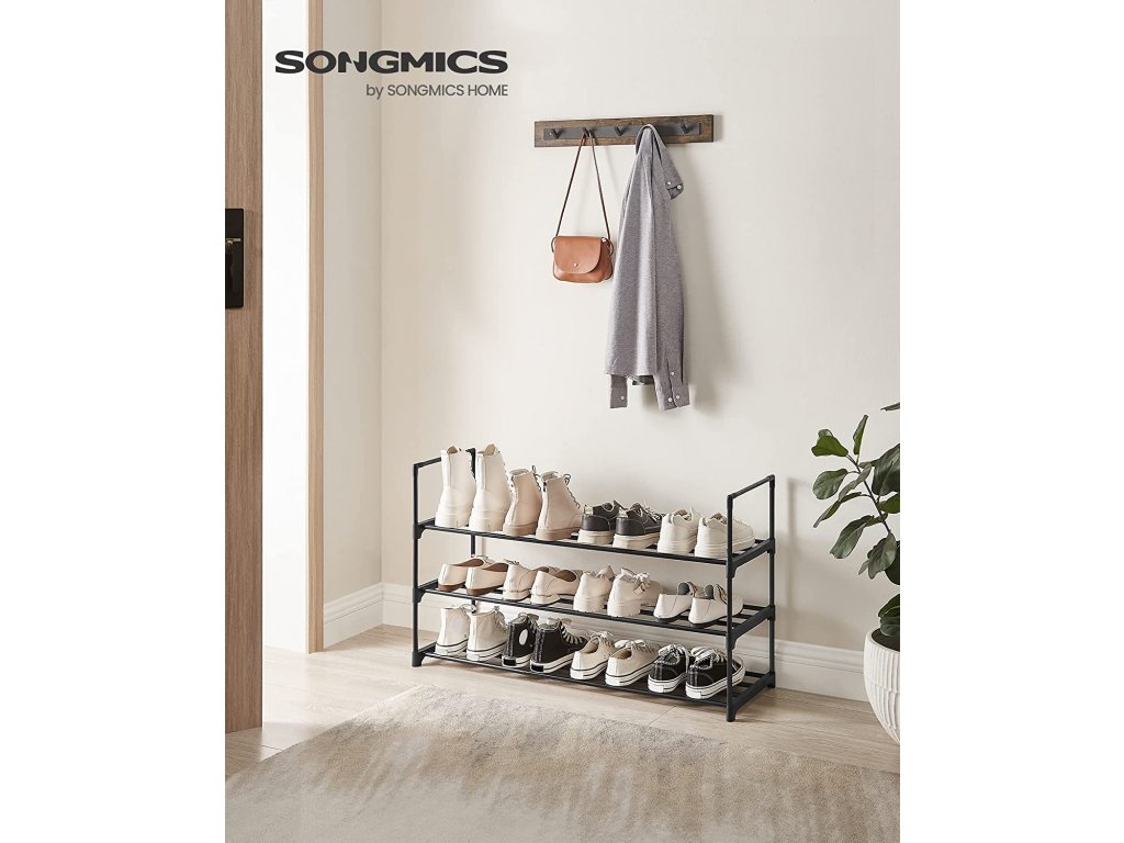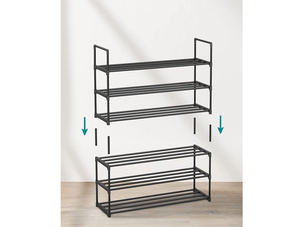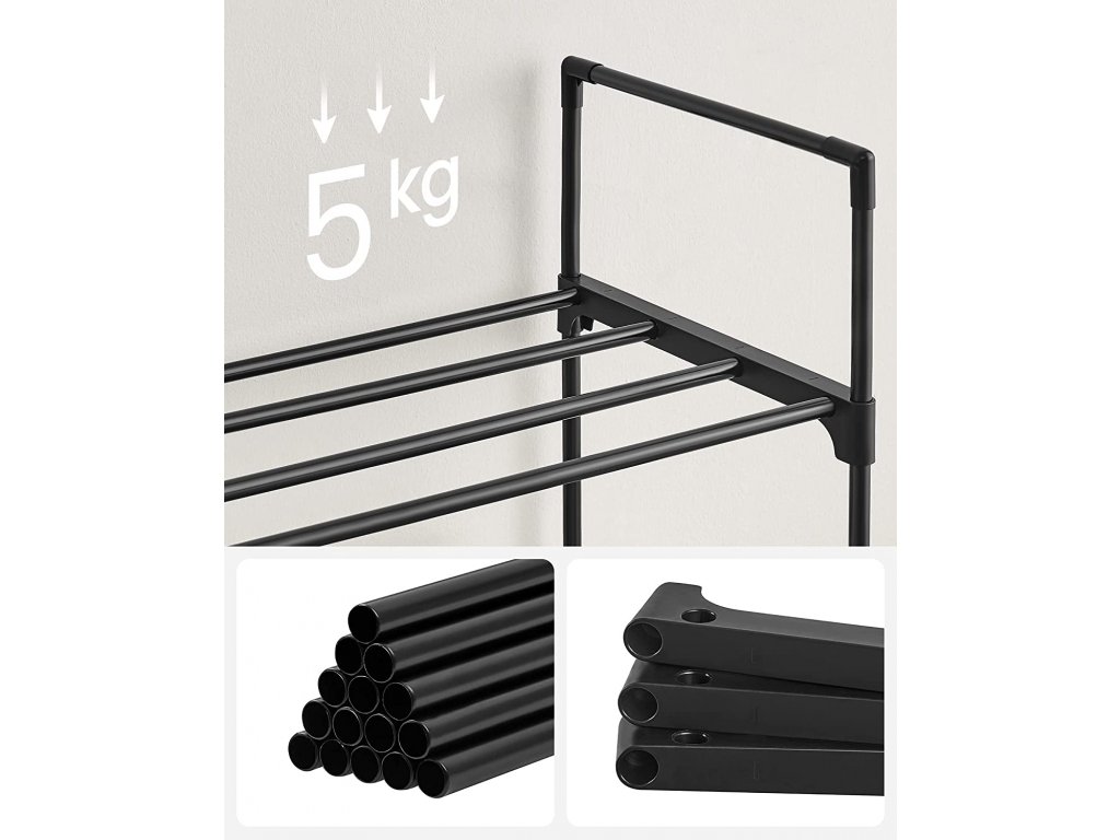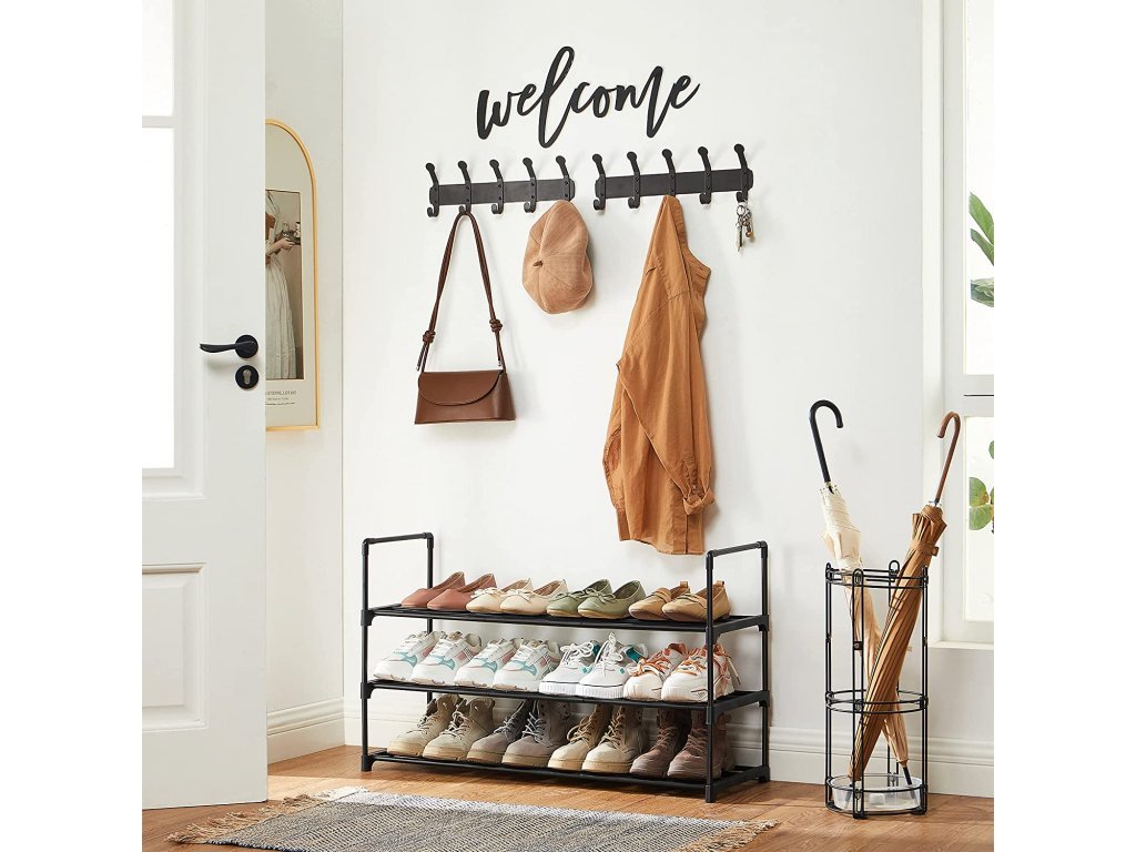 Černý kovový skládací botník je velkým pomocníkem do každé menší předsíně.