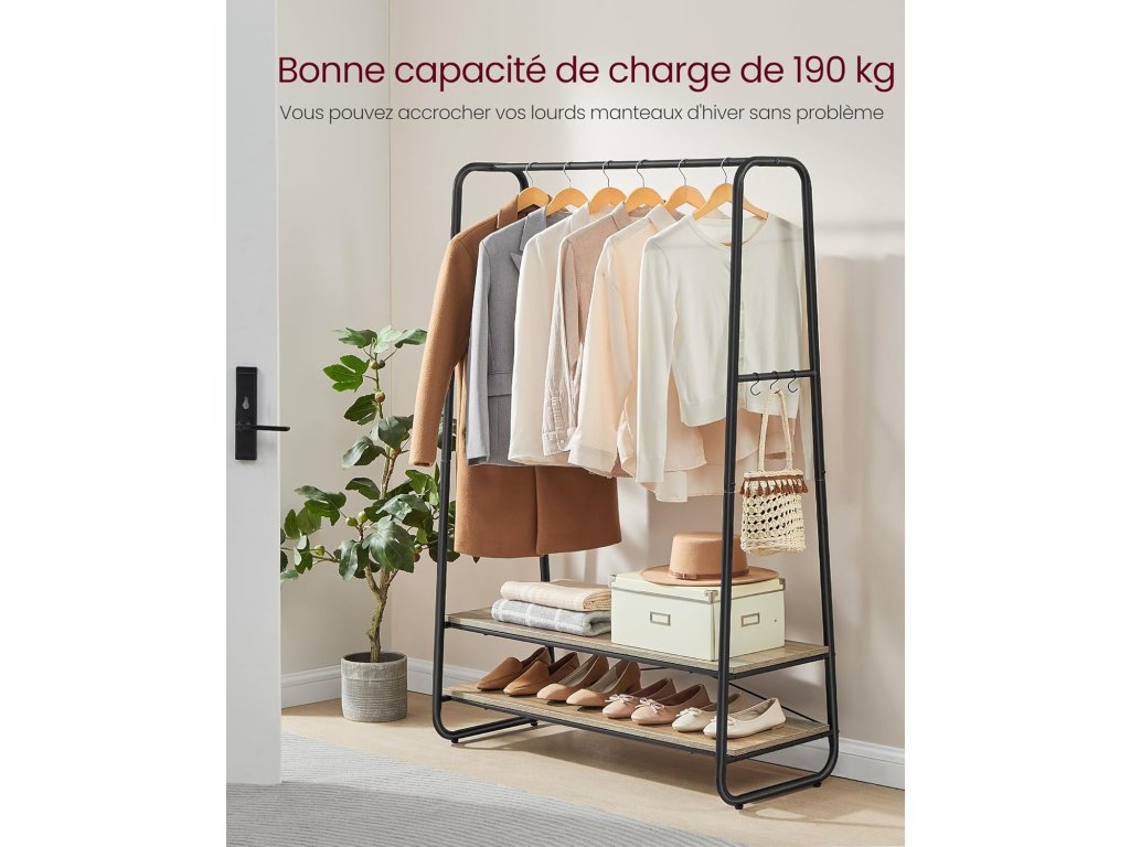 Věšák na oblečení se závěsnou lištou, 2 policemi a 6 bočními háčky ve tvaru písmene S usnadňuje ukládání oblečení, bot, tašek a doplňků, abyste měli v životě pořádek.