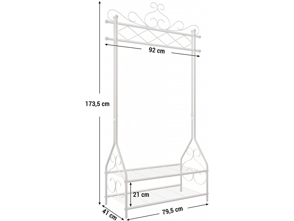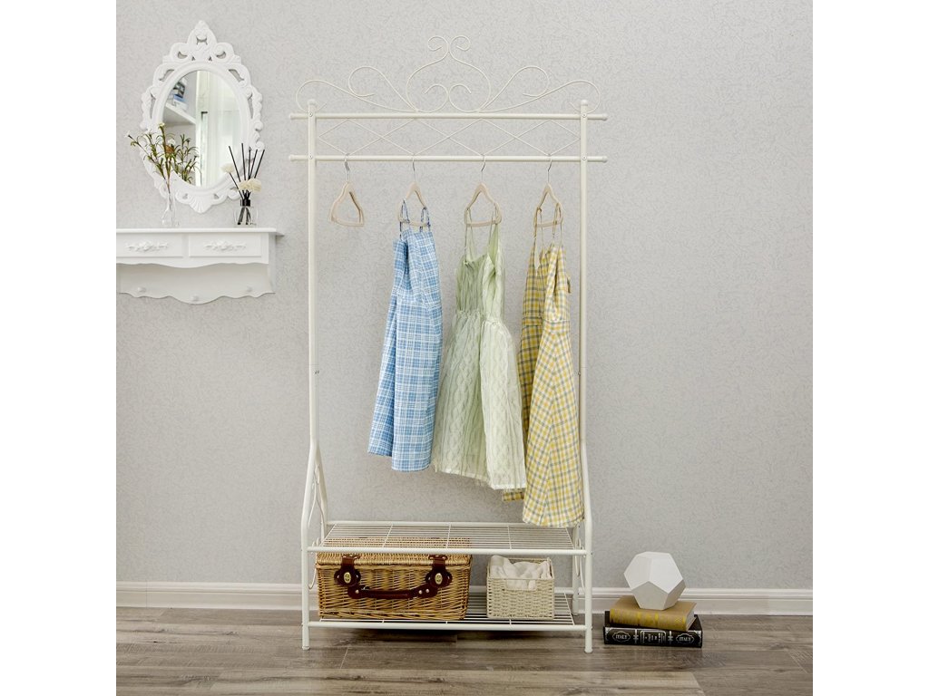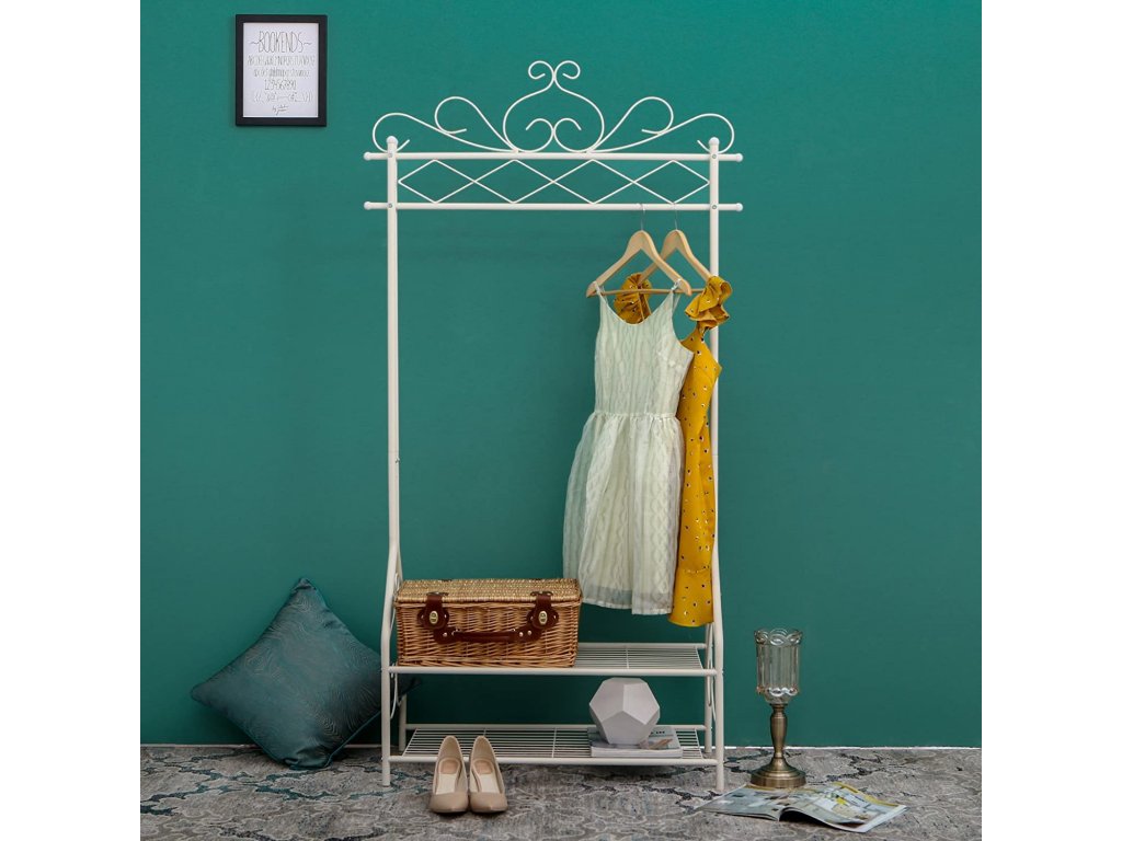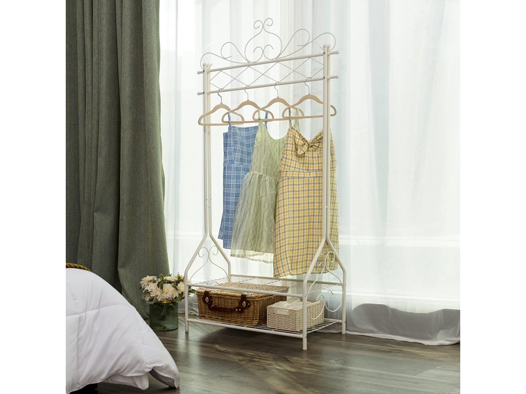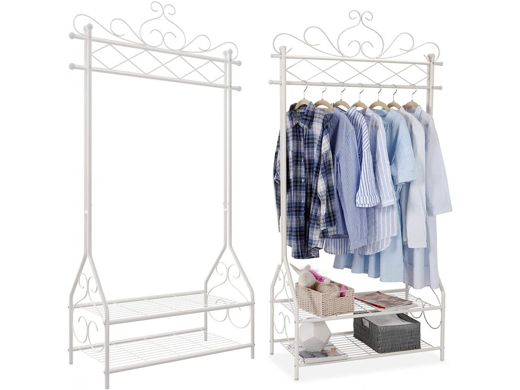 Kovový stojan na šaty bílý ozdobný