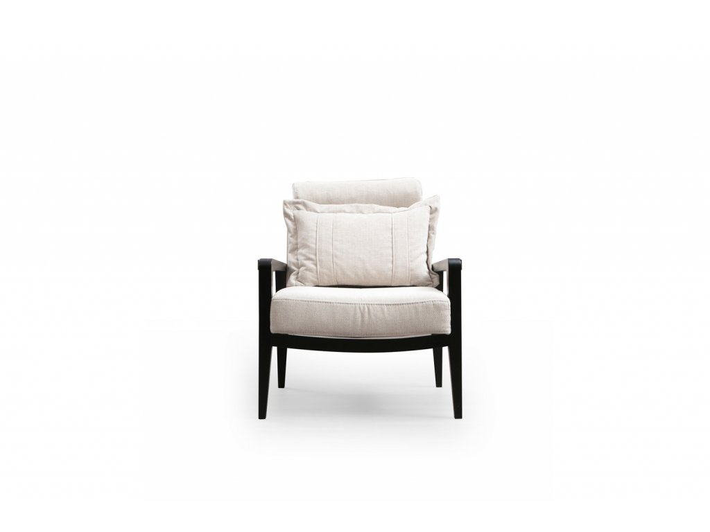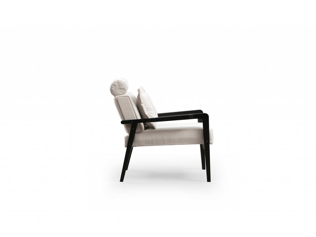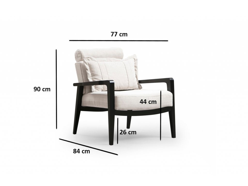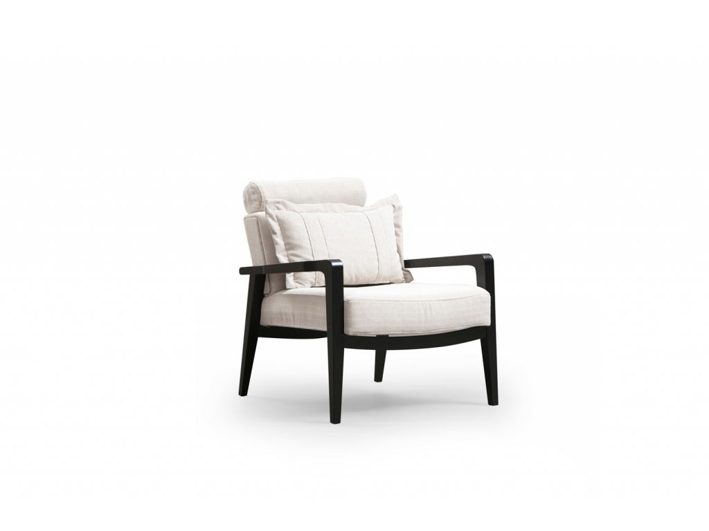 Klasické nižší křesílko s dřevěnou konstrukcí z bukového dřeva lakovanou v černé barvě a pohodlným sedákem i opěrkou.