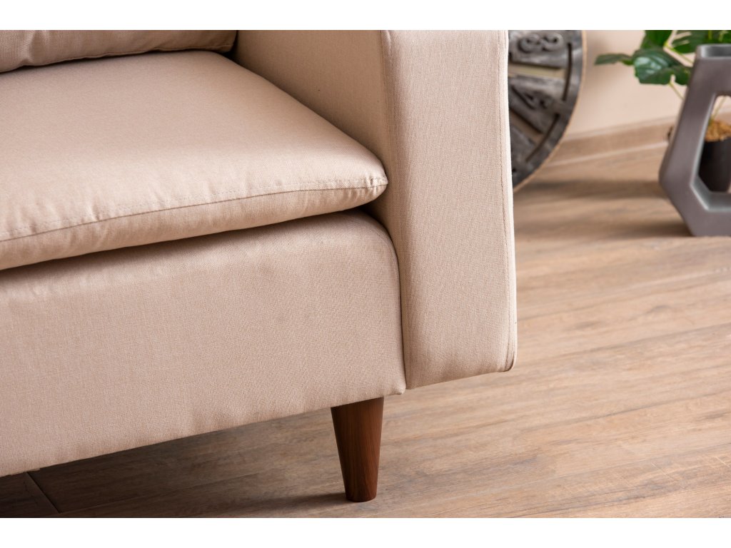Je vyrobené z kovu, z 28 DNS pěny, zadní polštář ze silikonových vláken a ze lněné látky krémové barvy.