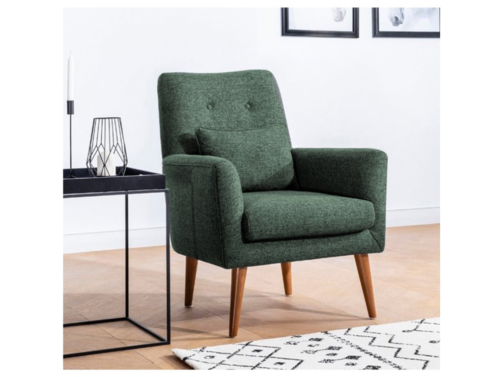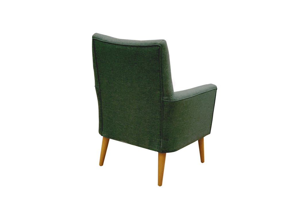 Křeslo klasické konstrukce na elegantních dřevěných nohách a pohodlným polstrováním.