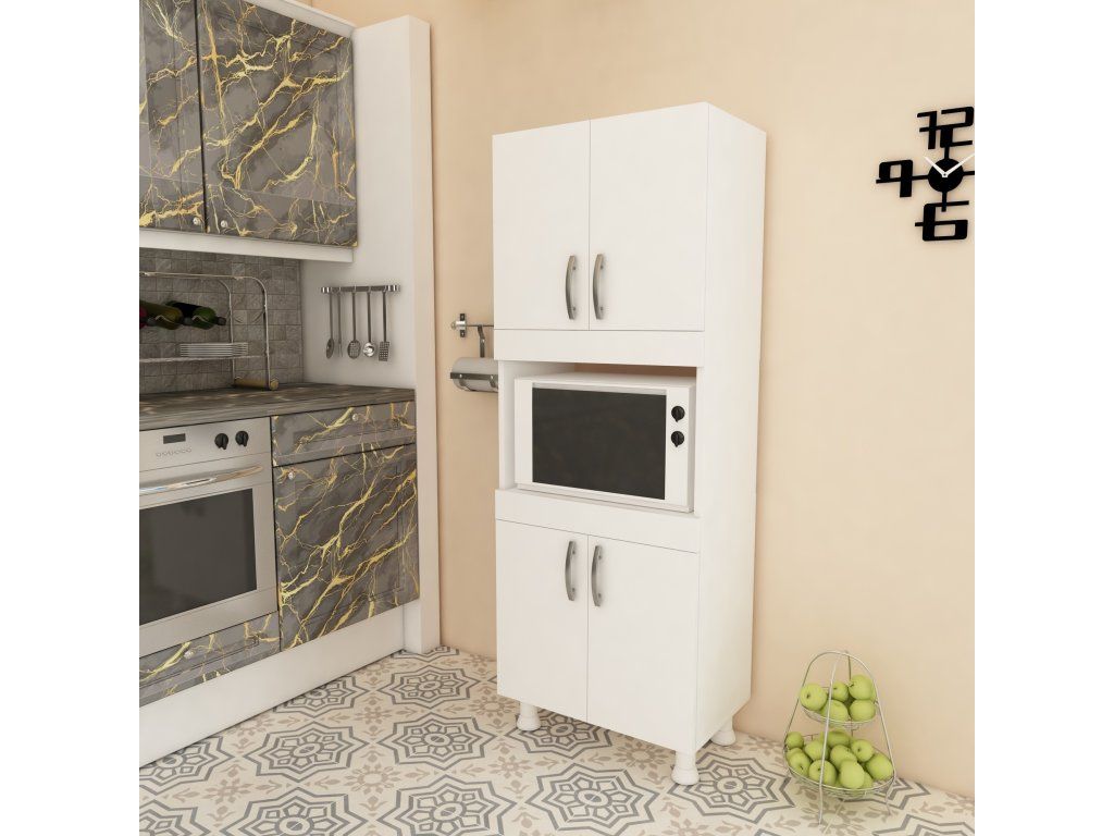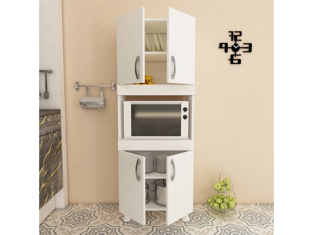 Kuchyňská skříňka ALYA v bílém provedení je skříňka se dvěma uzavíratelnými úložnými prostory a policí na mikrovlnou troubu.