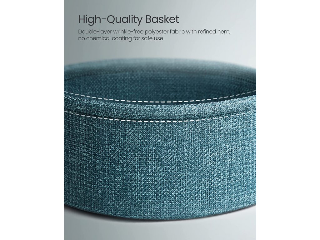 Dvouvrstvý koš z nemačkavé polyesterové tkaniny je příjemný na pohled a neobsahuje chemické látky pro bezpečné používání. Svým vzhledem připomíná plátno a dodává tomuto malému stolku jedinečný nádech.