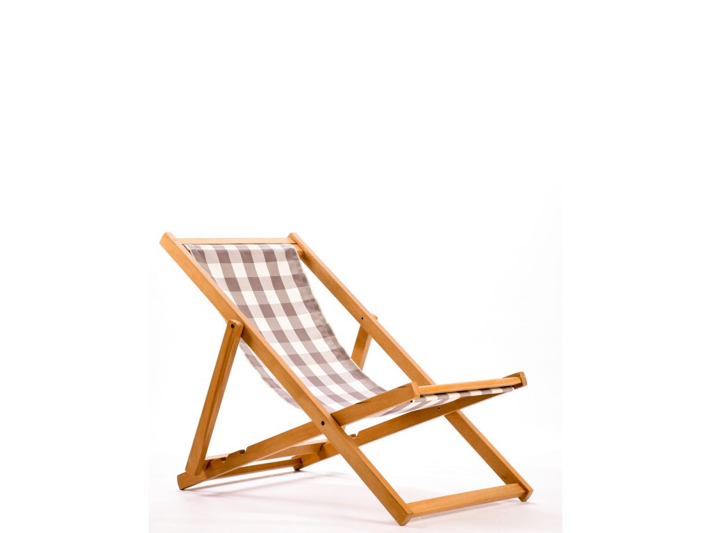 REPOSE BEACH je nastavitelné lehátko vyrobené z bukového dřeva doplněné o hnědo-bílou polyesterovou látku.
