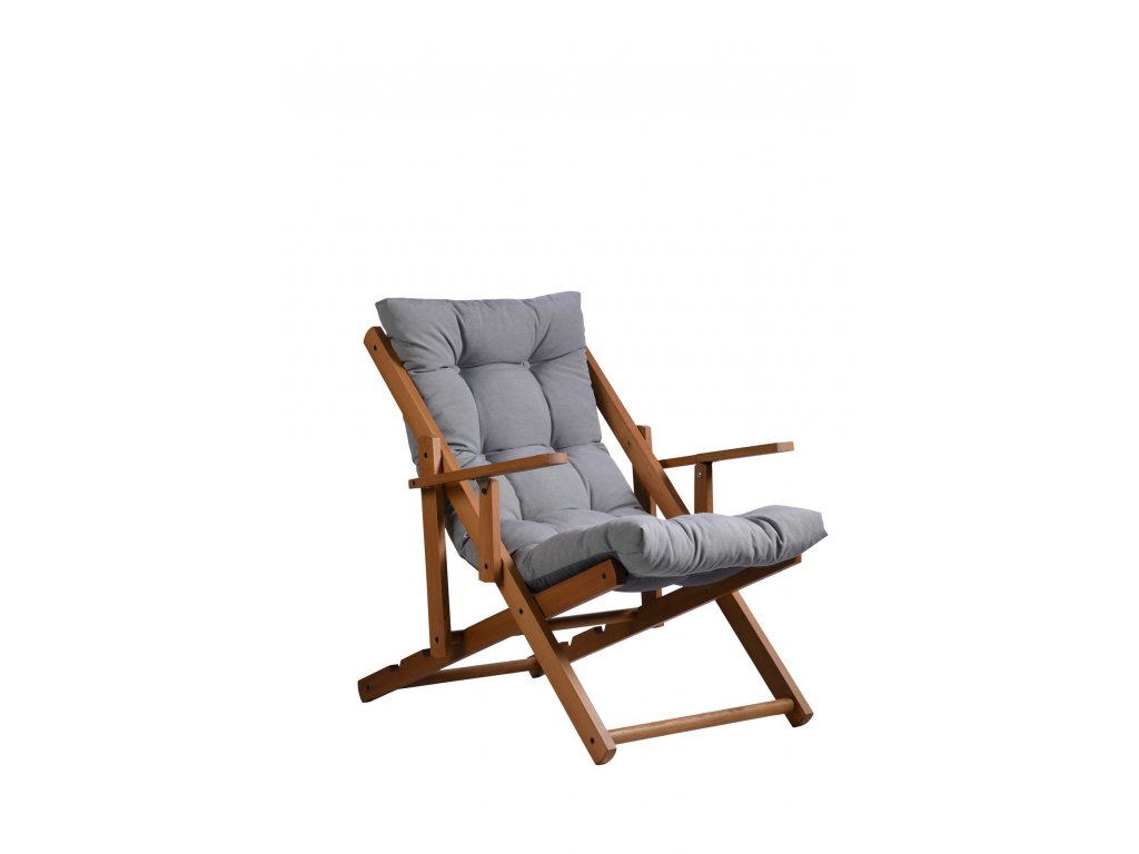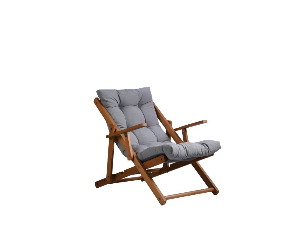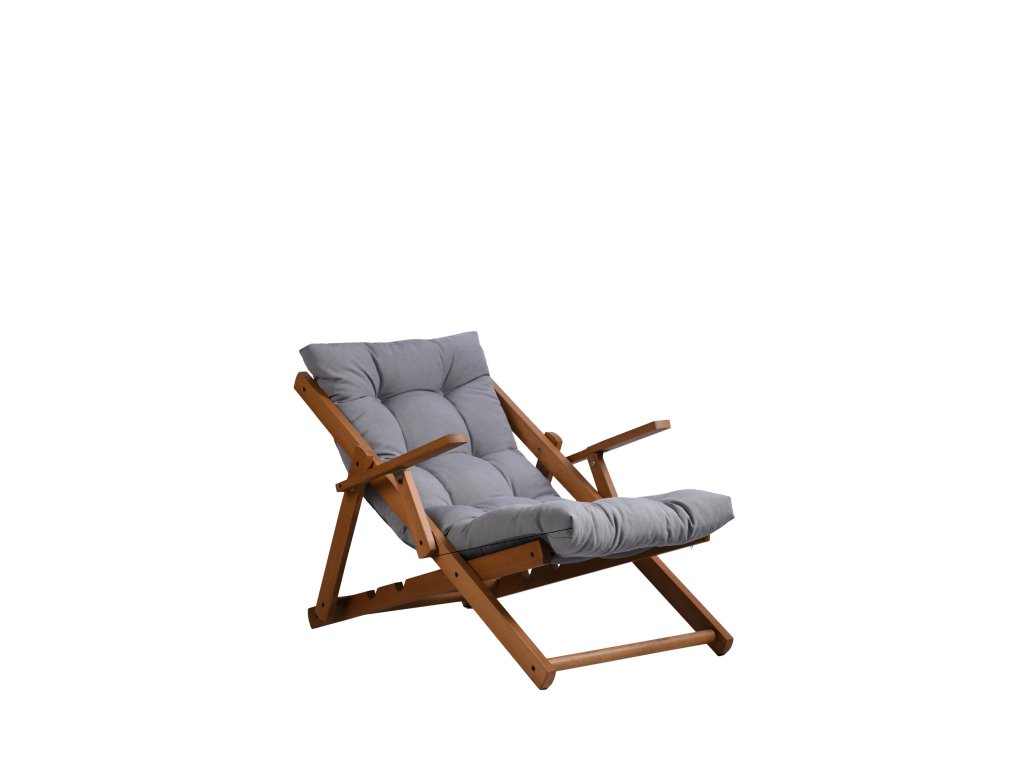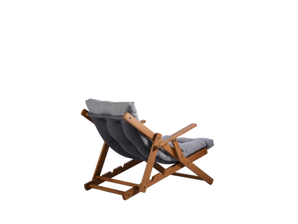 Praktické dřevěné lehátko REPOSE s šedým polštářem zaujme svým designem i možností výškového nastavení.