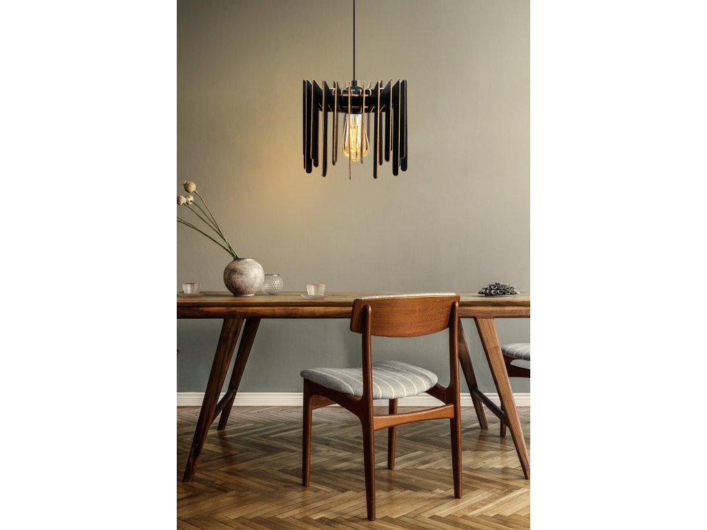 Černý lustr 155 vydává do stran tlumenější světlo, vrhá však o to zajímavější stíny.