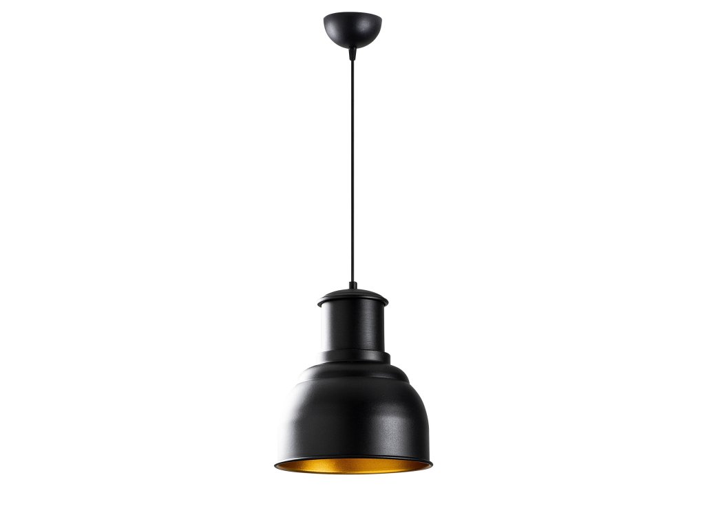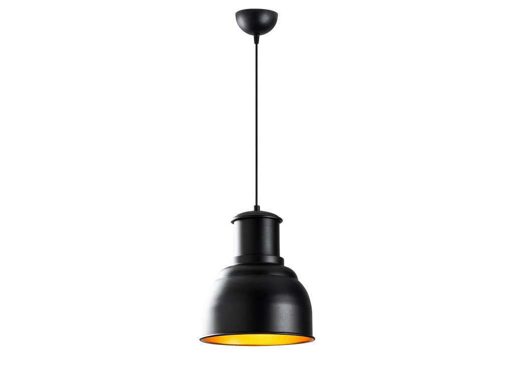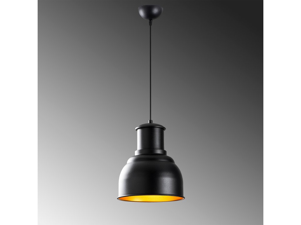 Tělo i stínítko lustru jsou z kovu s černou a zlatou povrchovou úpravou.