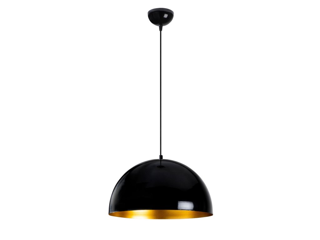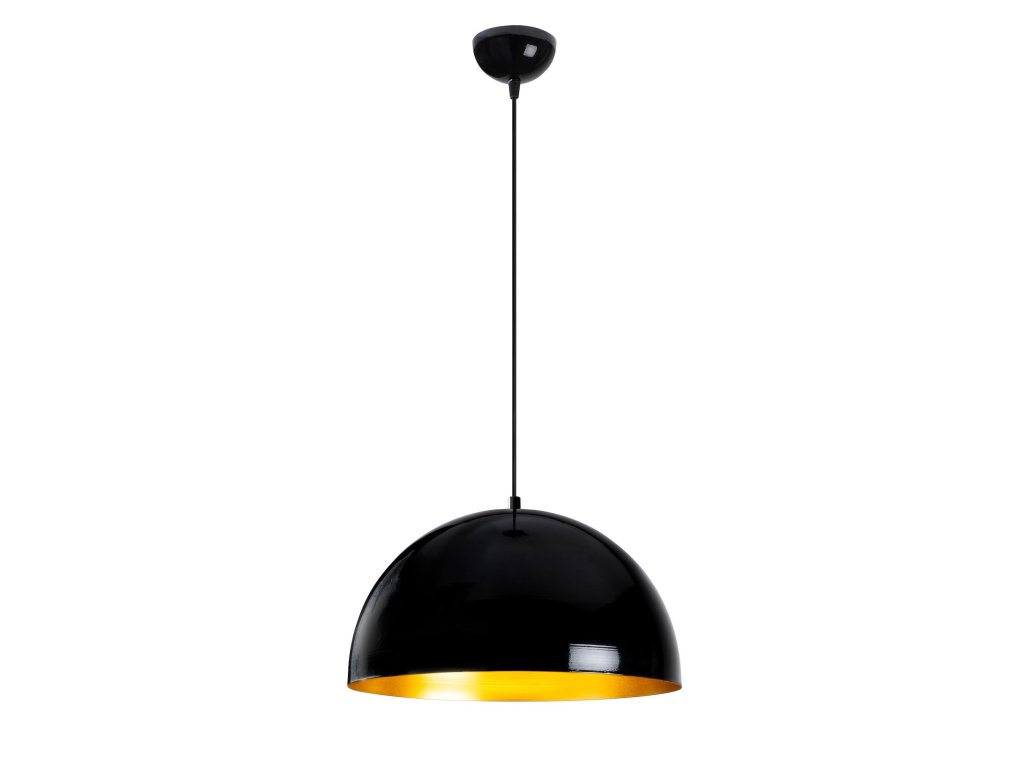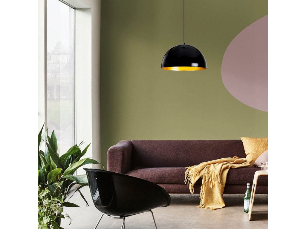 Tento Lustr evokuje industriální styl, je však příjemně zjemněn zlatou barvou vně stínítka.