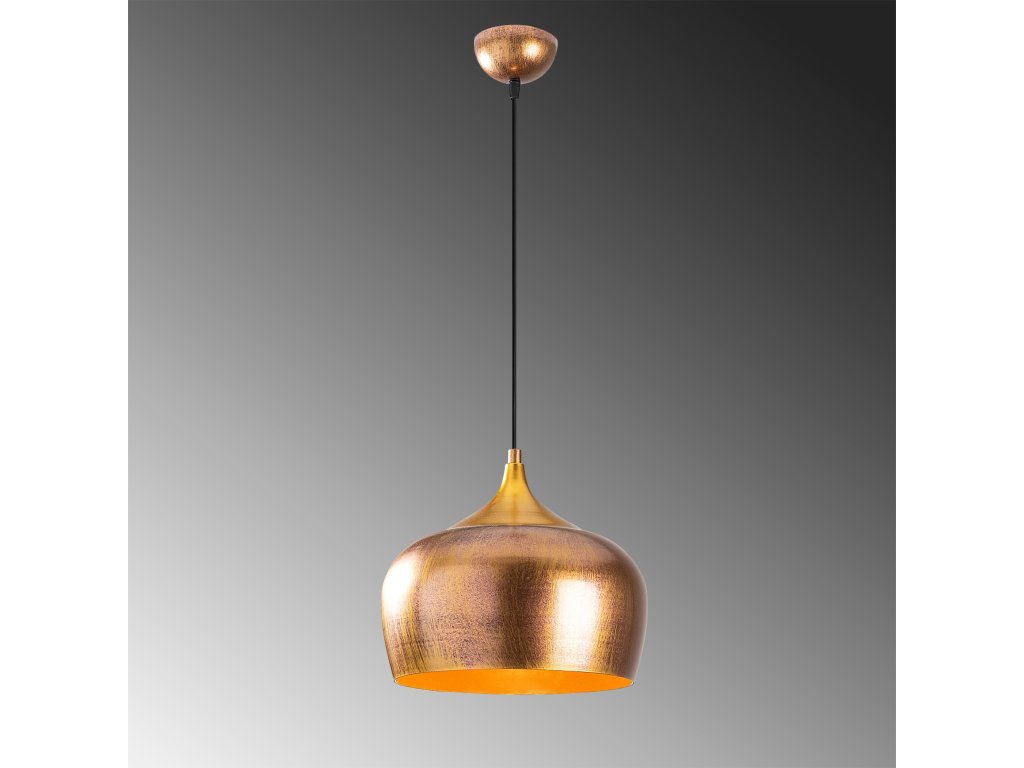 Lustr BERCESTE tvoří menší základna a elegantní zlatý lesklý poklop umocňujícím teplou barvu světla, které vydává.