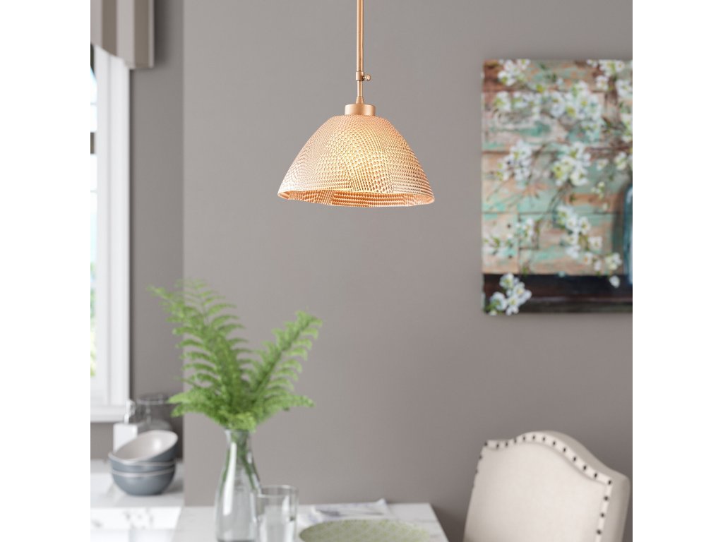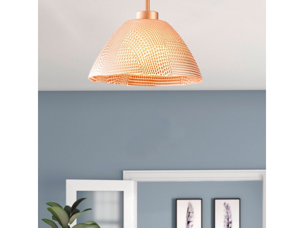 Z malé základny je na tyčce usazené bílo-měděné stínítko, který může být vhodné právě do Vašeho domu či bytu.