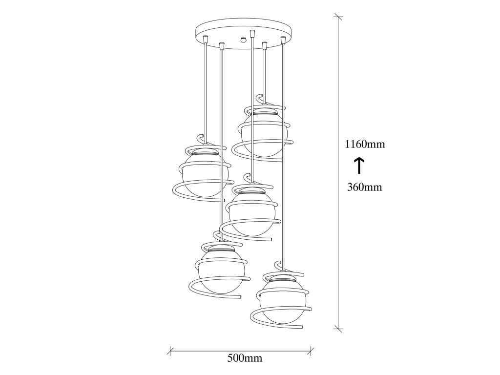 Lustr má nastavitelnou výšku, a tak může mít všech pět stínítek se spirálou buď stejnou, nebo různou vzdálenost od základny.
