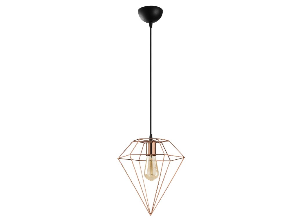 Malá černá základna a měděné robustnější stínítko lustru ELMAS jsou propojeny červeným kabelem s variabilní délkou, která se přizpůsobí Vašim potřebám.